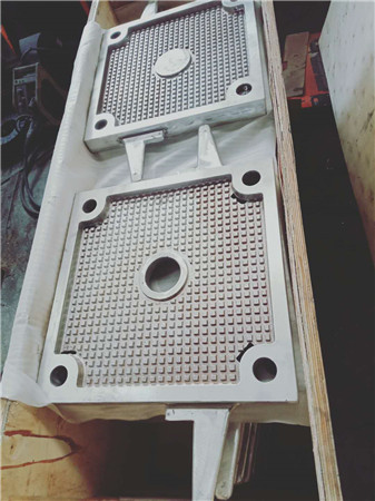 铸铁板比较,新的铝合金压滤机板具有以下优点: 铝合金滤板压滤机是铸铁滤板重量的三分一,重量轻、人工操作操作简单省时省力。强度高、过滤压力大、